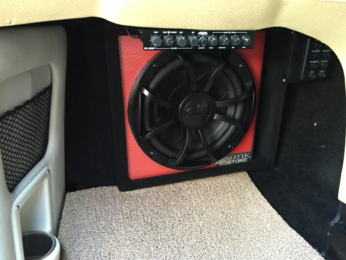 Custom install and build on this Centurion FX44 under dash. houses a WS420SQ and a XXX 12″ woofer